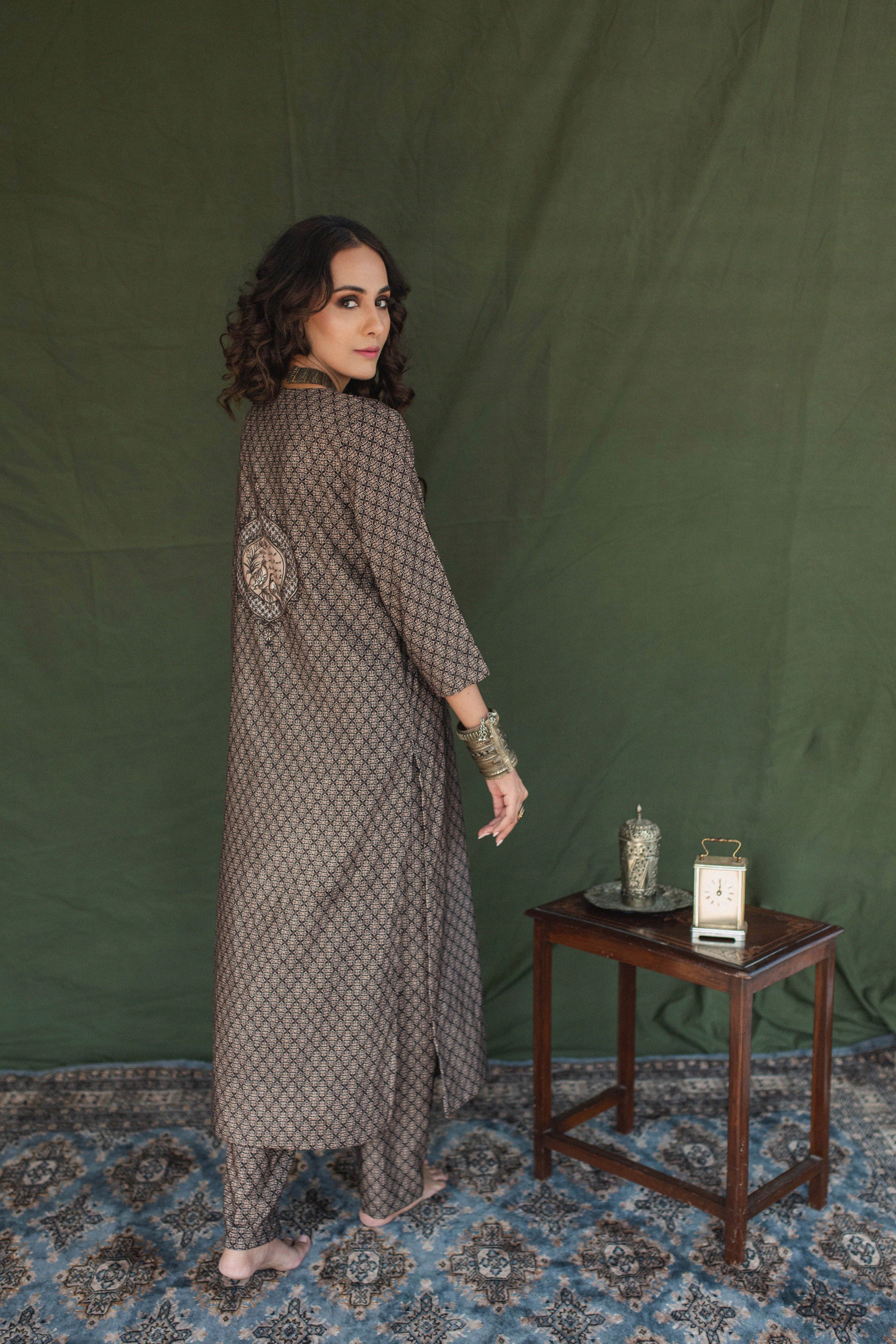 - Boat Neck With An Illustration Of Snow Leopard (Barfani Cheetah) On The Neckline