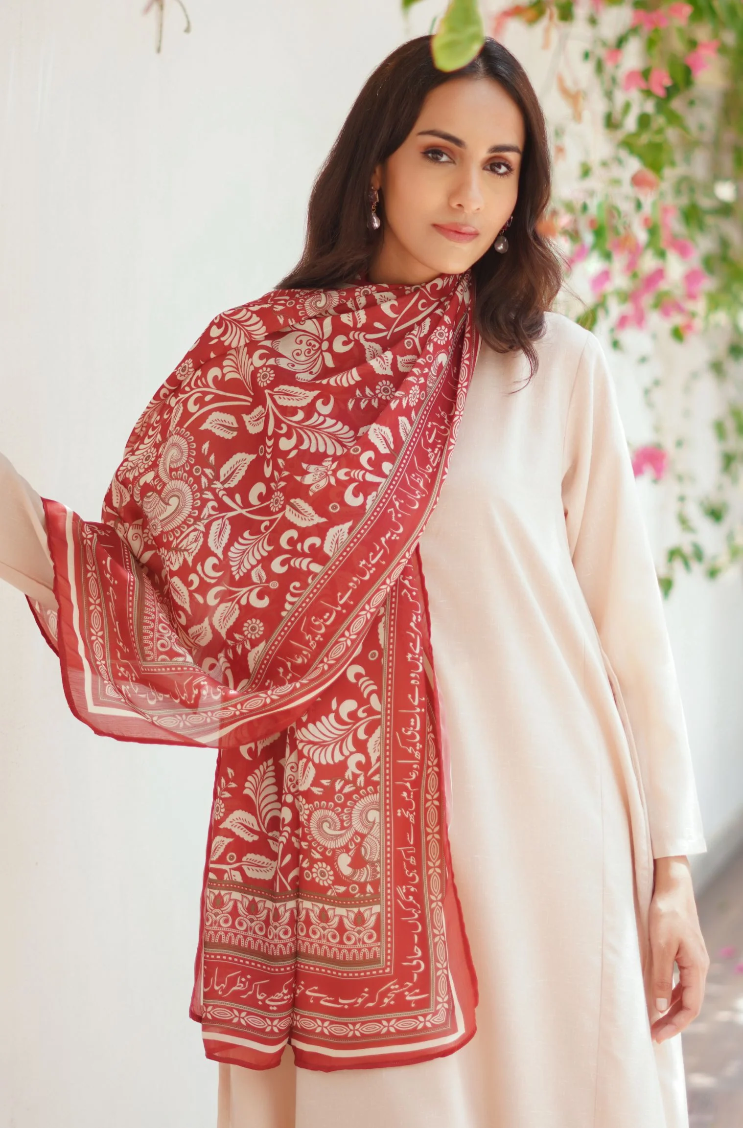 The Nayaab Scarf, made from luxurious Crinkle Silk is an Ode to Altaf Hussain Hali. Featuring an intricate Print Detail, Available in 3 Beautiful Colors!