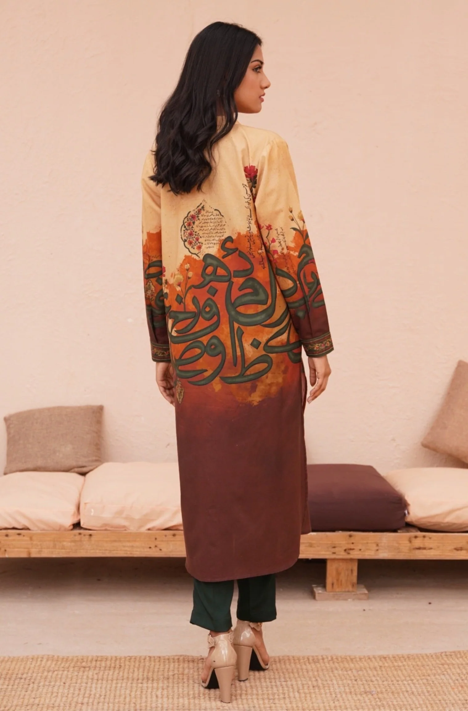 Noor Long Shirt signifies the importance of accepting your Brighter Parts (Your Shades Of Sunset) and your Darker Parts (Your Shades Of Forest) because you’re perfect in your own imperfections.