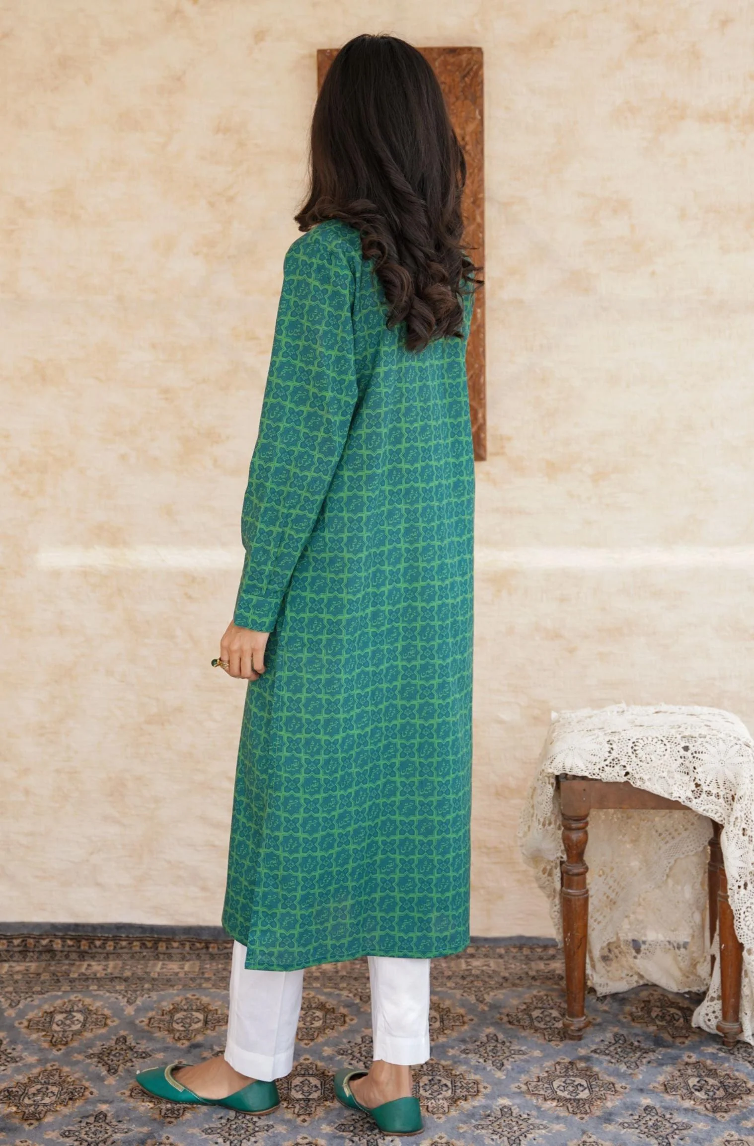 Throughout this kurta is a recurring arrangement of the words یقین (Yaqeen), جستجو (Justuju), and خوشی (Khushi) that serve as a reminder to never give up and keep believing in yourself.